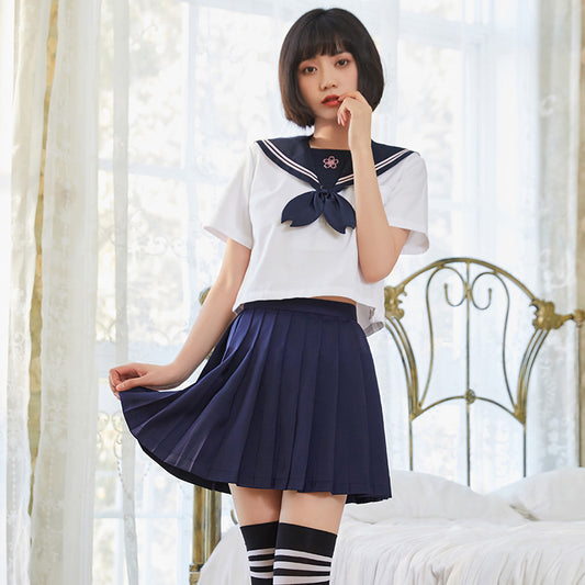 セーラー服 青 白い襟 コスプレ 女子高生制服 萌え萌え 蝶結び 3点セット