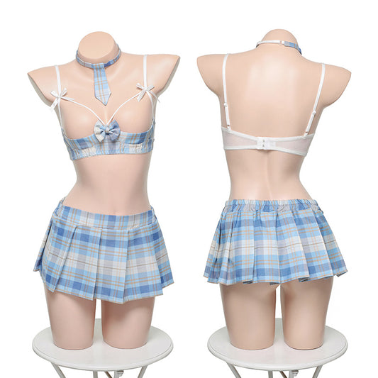 胸出し女子高生制服 過激ランジェリー 誘惑 エロ 可愛い ブルー