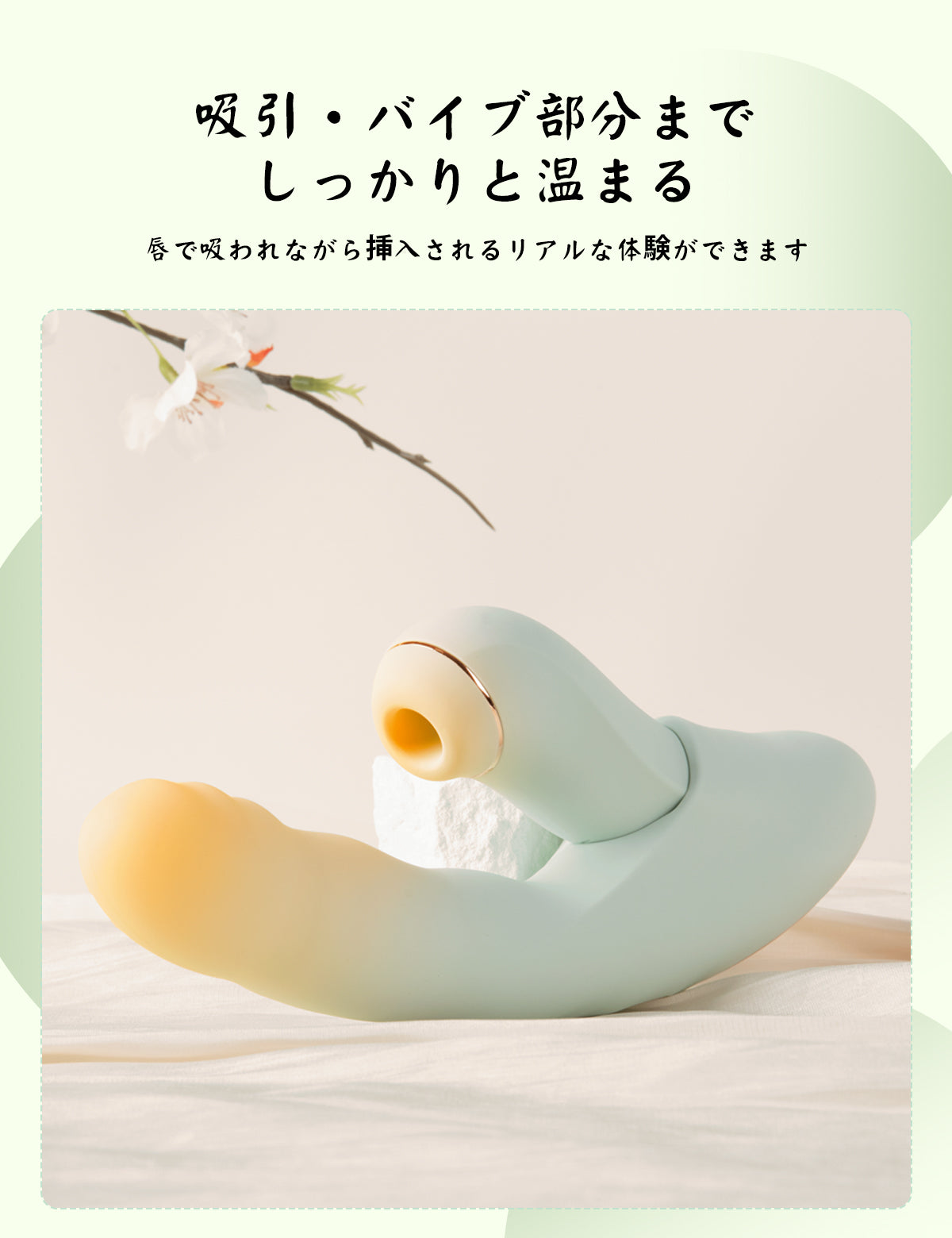 - 吸引口と挿入部分が同時に熱くなり、唇で吸われながら挿入されるリアルな体験ができます